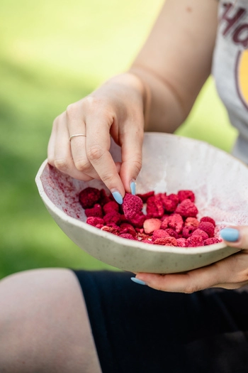 The BAMbastic decoration set delights with an indispensable dessert decoration that always impresses. BAM Freeze-dried raspberries and BAM Freeze-dried strawberries are waiting for you in the package. The brightly coloured pieces of fruit are the perfect accompaniment to a freshly made chocolate cake or freshly baked muffins. The pack also includes BAM blue and white sugar marshmallows and BAM classic sugar marshmallows in pink, cream and white. BAM Mini Marshmallows are the perfect accompaniment to hot chocolates and chocolate fondues for your little ones, who are sure to love the marshmallows. Mini marshmallows can also be the perfect decoration on your cake.