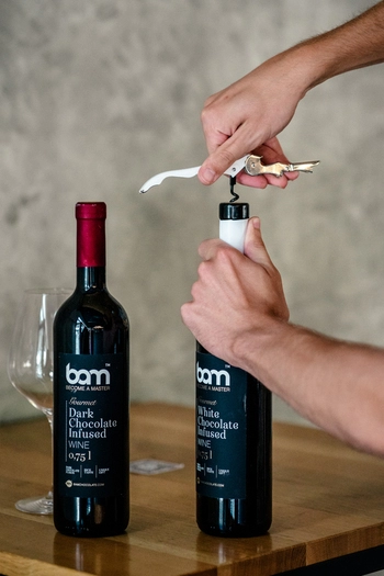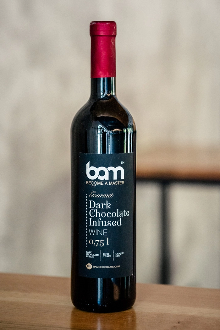 BAM red chocolate wine (0.75 l) can be consumed on its own as an aperitif or with a dessert such as dark chocolate, pralines, barry fruits, nuts, and last but not least with selected gourmet food. BAM red chocolate wine can also be a great base for making cocktails, and it also finds its place in desserts. The classic ruby ​​color with light purple shades reveals the sophisticated taste of the color, which is added to the wine by quality dark chocolate.