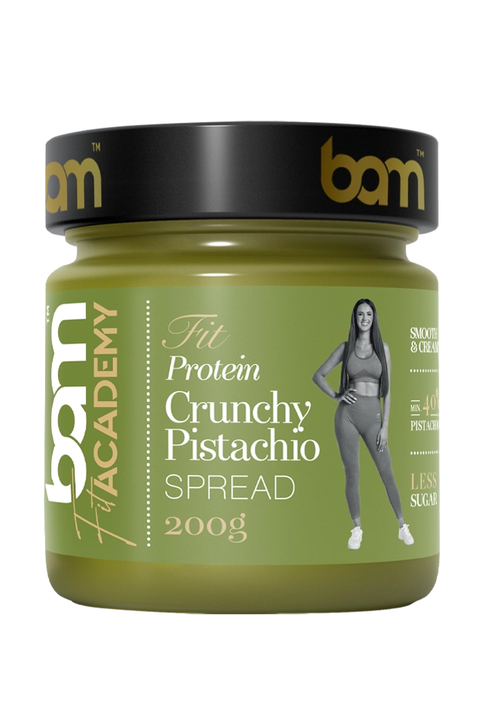 BAM Crunchy pistachio protein spread en