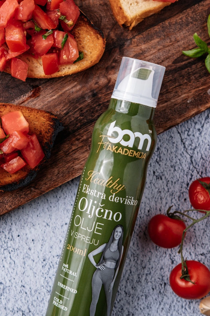 BAM Extra Virgin Olive Oil Spray (200 ml) is delicate green colour and its scent takes you back to summer, to olive groves and freshly cut grass. With a pleasant, slightly bitter taste of olives, this homemade olive oil evokes the juiciness and authenticity of Slovenian Istria. Olive oil is not called the free liquid gold of the Mediterranean. It is easily digestible, lowers cholesterol levels and is rich in antioxidants, which is why it is considered a healthy fat.