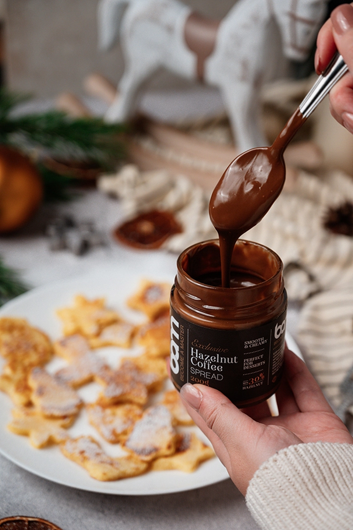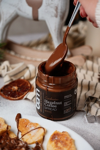 Hazelnut paste (30 %), cane sugar, sunflower oil, vegetable fats (sunflower oil, cocoa butter), skimmed milk powder, partially defatted hazelnut flour (5%), micronized coffee (4%).