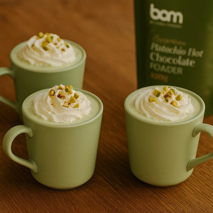For all pistachio lovers! BAM Pistachio Hot Chocolate combines the creamy texture and subtle flavour of pistachios, harmoniously blended with a chocolate base. The perfect choice for indulging on cold evenings.
