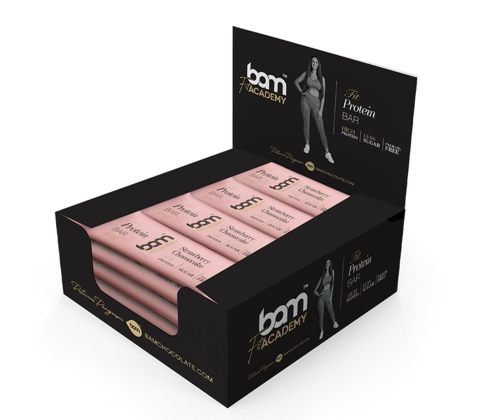 The BAM fit collection combines superior nutrition with exceptional taste, making it the ideal solution for those who want to maintain an active lifestyle without compromising on taste. One product that particularly stands out is the BAM Strawberry Cheesecake Protein Bar, which combines the refreshment of juicy strawberries with the rich, creamy sweetness of the popular cheesecake, without added sugar.