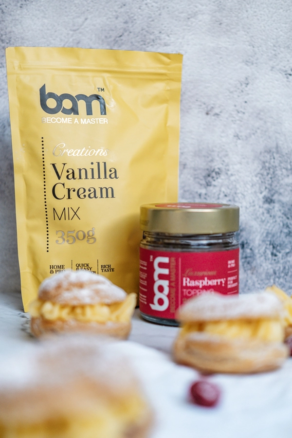 We've created a pack of products that can be used to make a luscious and full of flavour vanilla cake with raspberries. BAM vanilla cream mix, BAM vanilla pods and BAM raspberry topping create a flavour combination you really can''t go wrong with. Become a pastry chef with us!