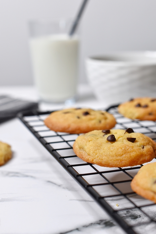 Place the baking tray with the balls in the fridge for half an hour, as the biscuit dough needs to be really cold before baking. Meanwhile, preheat the oven to 190°C. Slide the baking tray into the preheated oven and bake the biscuits for about 11 minutes. Using a palette knife, transfer the baked biscuits to a wire rack to cool completely.