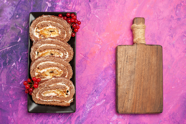 From the short end of the cake, roll the cake tightly into a spiral, using baking paper. Wrap the roulade in plastic wrap and chill in the fridge for at least 30 minutes before serving.