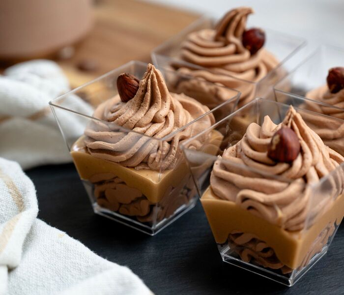 Serve and enjoy the rich taste of chocolate mousse with a hint of hazelnut.