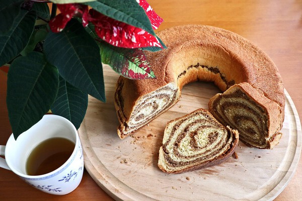 Chocolate potica with hazelnuts