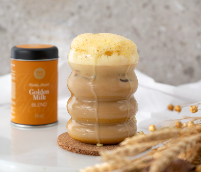 Pour the warm milk into a cup and add the honey and BAM Golden Milk mix. Froth it all well with a milk frother.