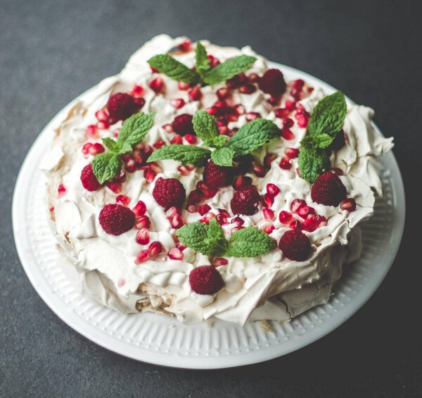 Spread the prepared Pavlova cake batter into a 20 or 23 cm diameter baking pan. If desired, you can use the back of a large spoon to make decorative peaks. Make sure that the edges are relatively high.