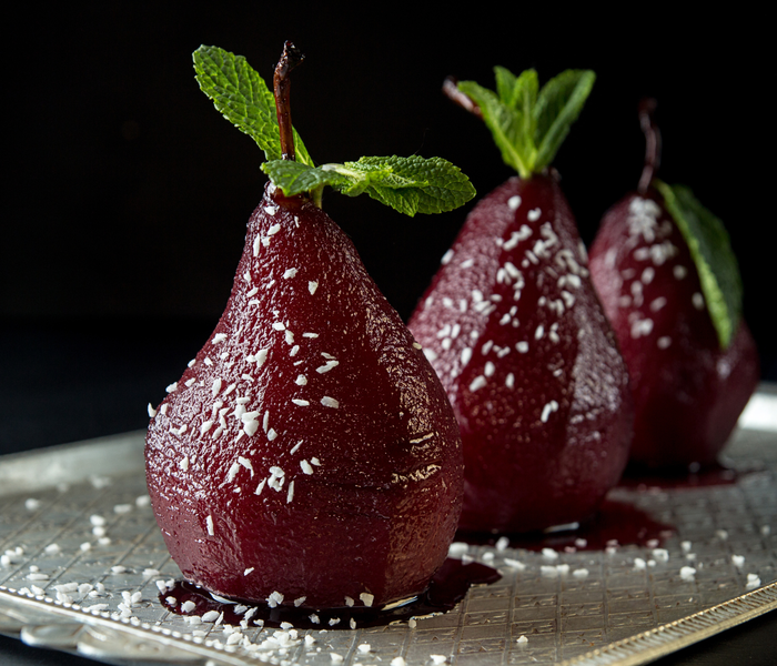 Cooking the pears: gently place the pears in the hot wine. Cover and cook on a low heat for about 20-30 minutes, basting occasionally with wine, until the pears are soft but still hold their shape. When the pears are cooked, remove them from the wine and place them on a plate.