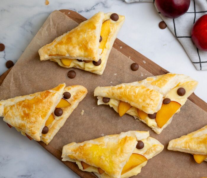 Simple vanilla cream in puff pastry with nectarines and chocolate