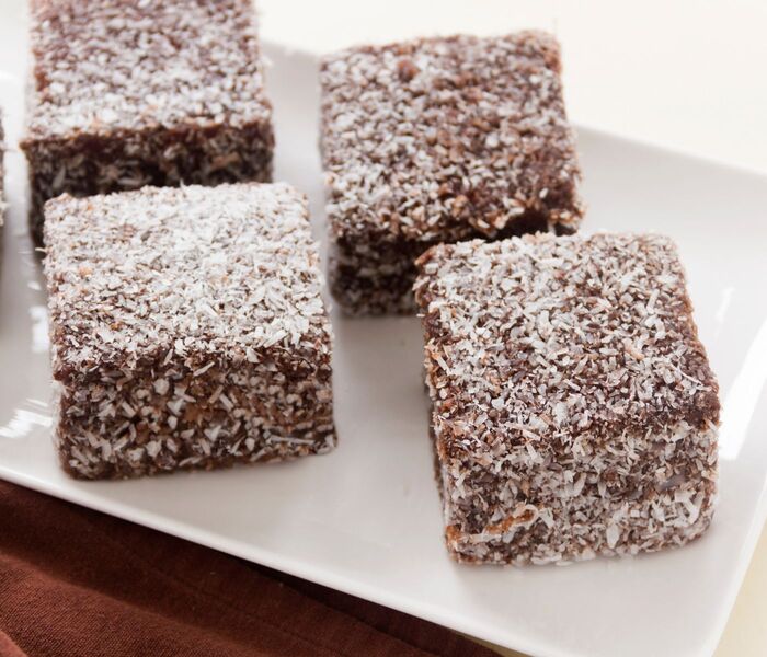 Once the chocolate coating has set a little, roll the cubes in coconut flour. Allow to cool and the topping to set completely.